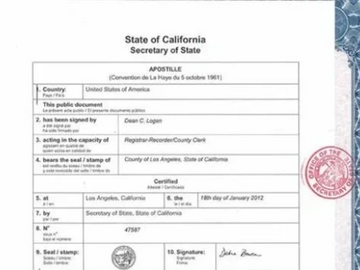 The California Secretary of State provides an Apostille to authenticate California public officials' signatures on documents to be used outside the United States of America.